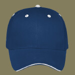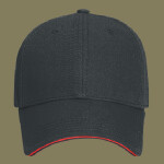 100% Cotton Structured Firm Front Panel Low-Fitting 6 panel cap Seamed Front Panel with Full Buckram 6 Sewn Eyelets Sandwich Visor 6 Rows Stitching on Visor Matching Fabric Undervisor Matching Color Sweatband Adjustable Hook and Loop Closure Size:OSFM -Adult (58cm/22.8")