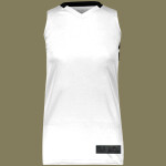 100% polyester wicking knit with color secure(r) technology that helps prevent dye migration * Wicks moisture * Ladies' fit * Updated tailored fit * Tag-free label * Outside locker label * V-neck collar * Racerback styling * Contrast color inserts * Designed to be NFHS compliant