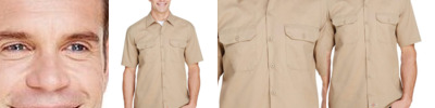 3.5 oz./yd²/115 gsm (US), 5.8 oz./L yd (CA), 100% polyester ripstop Moisture-wicking performance UPF 40+ protection Anti-microbial properties Structured collar with integrated collar stays Chest pocket with pen slots Full-button front Polyester mesh lining in upper back Back venting for breathability